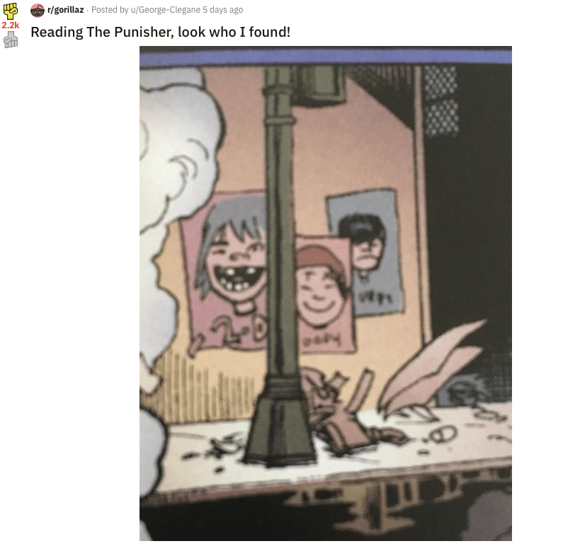 u/George-Clegane on Reddit posted that Marvel comic The Punisher has made a shout-out to Gorillaz: