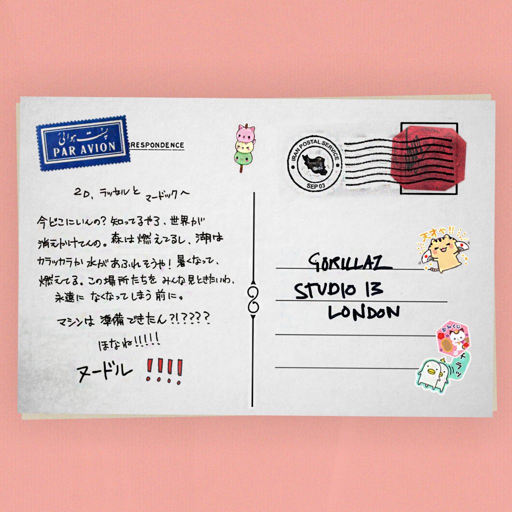 On Thursday, Noodle surprised us with a postcard to her three bandmates:
