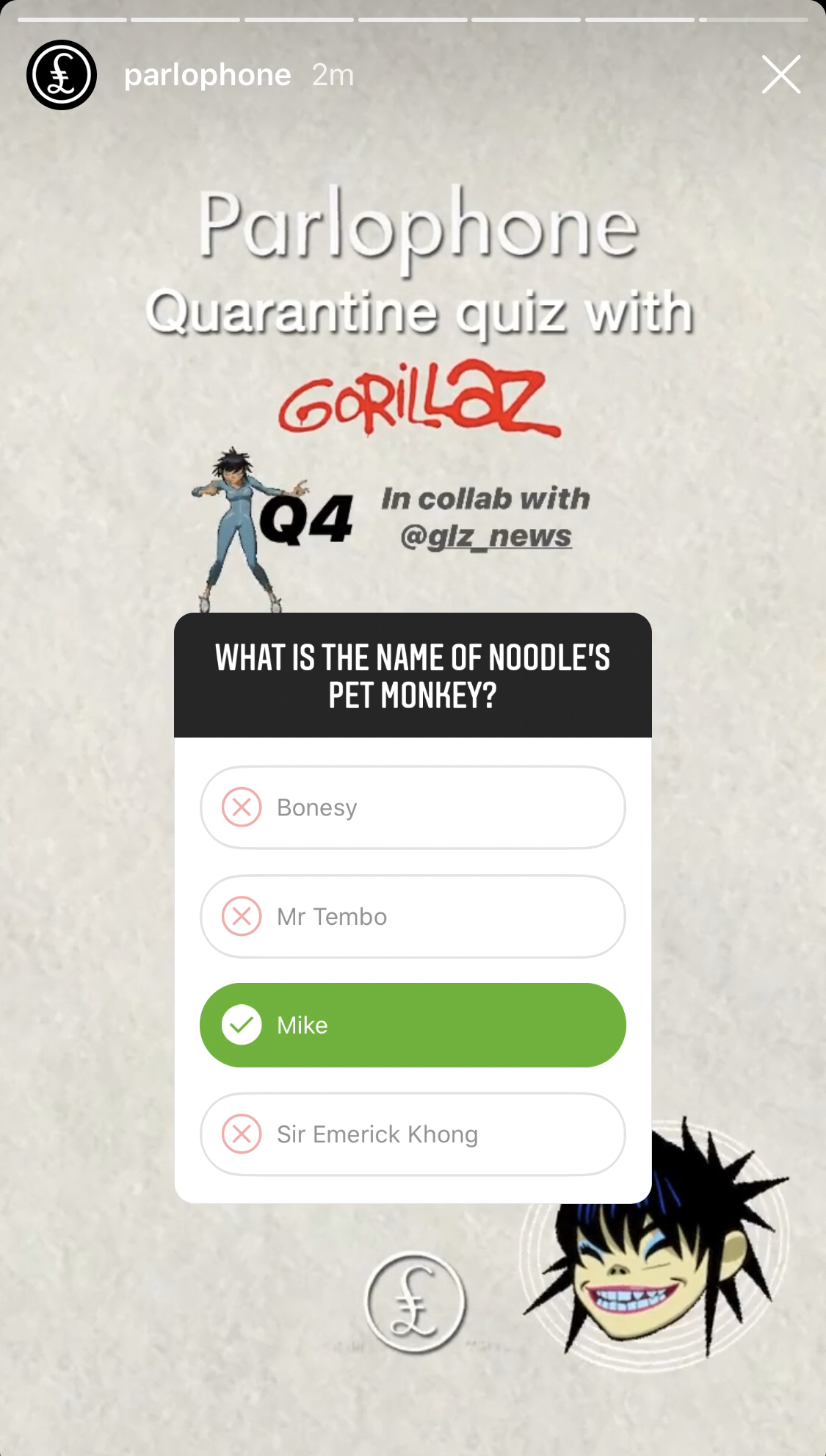Earlier today, Parlophone teamed up with @GLZ_News to host a Gorillaz quiz via their Instagram story, with a few pieces of Gorillaz clothing on offer to a couple of lucky winners who’ll be announced tomorrow. Check out the questions below.